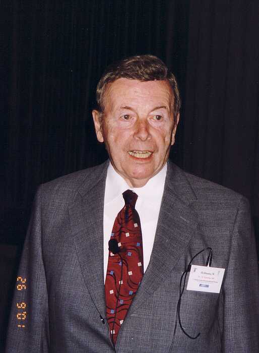 | 37. Deutscher Kongress für Sportmedizin und Prävention in Rotenburg an der Fulda, 26.-30.09.2001: Prof. mult. Dr. med. Dr. h.c. Wildor Hollmann (Ehrenpräsident des Weltverbandes für Sportmedizin und der DGSP) bei seinem Plenarvortrag "Gehirn - Geist - Psyche - körperliche Aktivität" am 26.09.2001 |